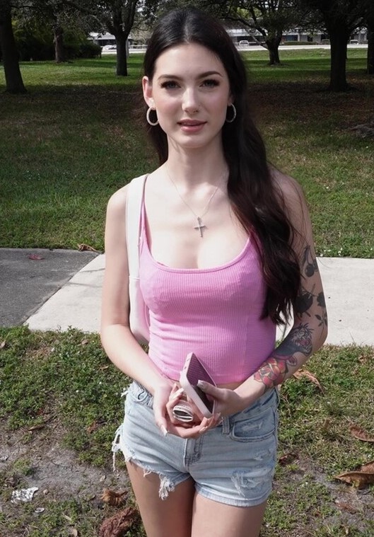 Молодая девушка решила срезать путь через парк, когда рядом с ней остановился знаменитый белый фургон. Парни знали как правильно вести разговор и Софи сразу же была очарована ими. Она продала им свой лифчик. Затем она выторговала у них до 1000 долларов, чтобы те посмотрели на ее сиськи. Она села в автобус и показала свои красивые сиськи. Когда парни предложили 1000 долларов за ее трусики, она поняла к чему все идет. Поэтому Софи просто позволила одному из них потрогать ее киску, потом отсосала его член и позволила себя трахнуть.