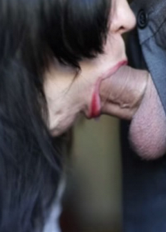 Девушка в белом платье встала на колени и отсосала большой член, по требованию парня она в серединке ролика проглотила его полностью. Большой член был ей по душе, поэтому сосала она с любовью.